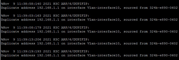 配置了VLAN10的网关,现在VLAN10的两台能ping通了,但两台交换机现在都不停的跳出下面的东西,是怎么回事?(VLAN20设置不了和VLAN10相同的网关吗?提示设置不成功)
