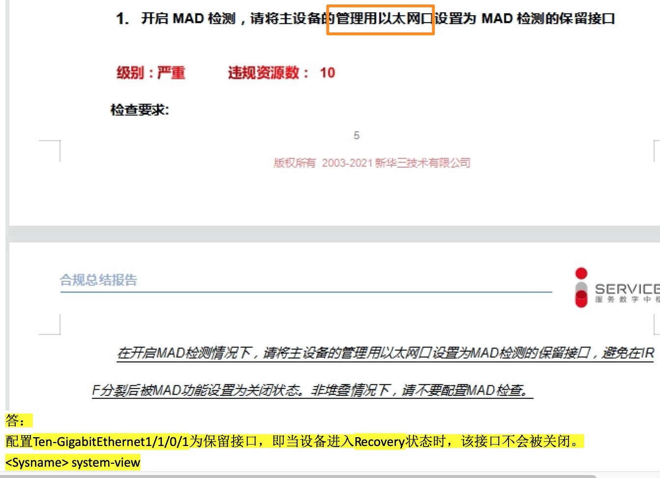 堆叠设备在iserver巡检报告中为啥提示将主设备管理用以太网接口设置为MAD检测??主设备又不会被Recovery禁用。