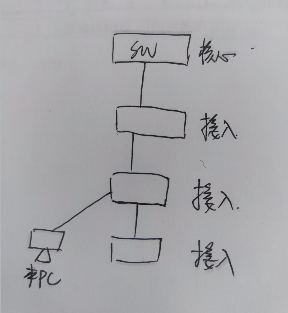 电脑ping网关偶尔连续丢包,每次连续丢三四个包,导致偶尔网络中断。PC与交换机的协商速率为100M,接口下无CRC包。以下是组网图