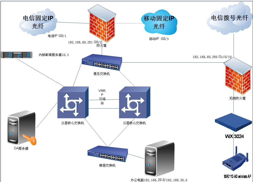 原先双线接入情况下,WX3024和普通的家用路由器都是接在三层核心7506上,现在新增一条拨号线路,新加一个防火墙,是WX3024直接接在新防火墙下,还是原先线路不动,75上走策略路由,WX3024接在新防火墙上怎么操作,最后详细点