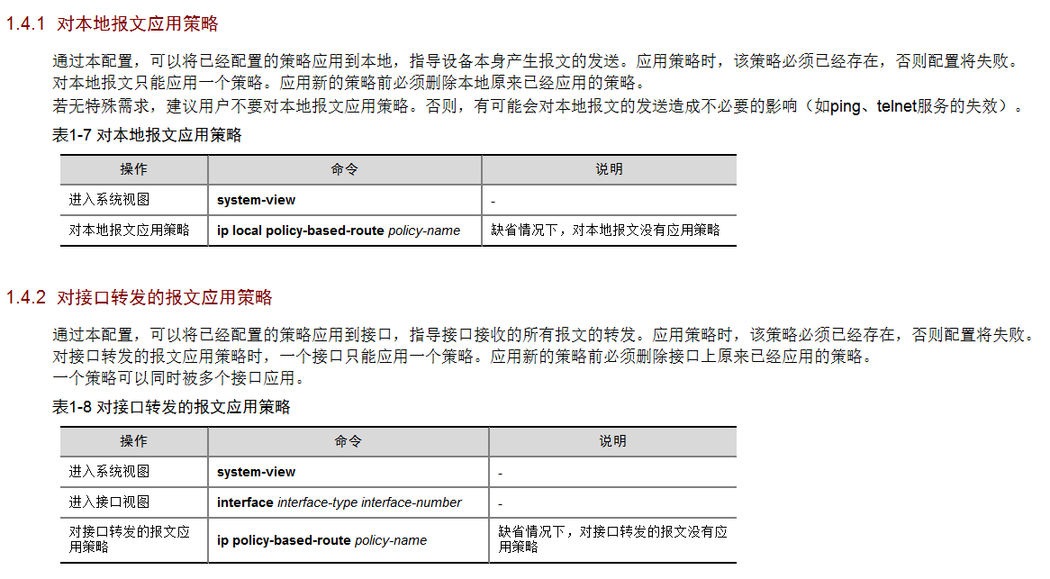 一个针对设备本身发出的ping、telnet等报文,另一个针对流入调用该策略路由的接口的报文。