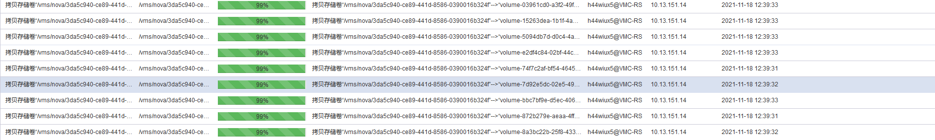 前台进度条不是很准确,需要后台看下磁盘是否仍在增长,当前是在拷贝,可以在目标存储卷上查看磁盘是否继续增长。