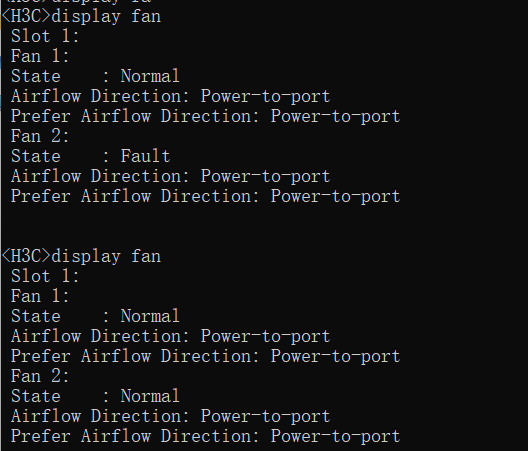交换机,最近出现风扇超高速运转。抓到风扇非常短暂出现Fault错误的状态如图,什么情况?