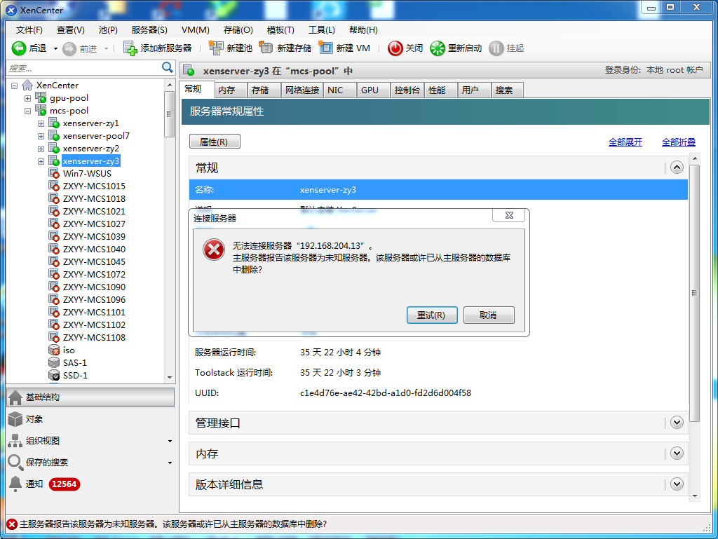 pvs桌面池中删除该服务器后无法添加到mcs池,XenCenter程序上添加给资源池添加服务器时提示 主服务器报告该服务器为未知服务器,可能已从服务器数据库中删除,
