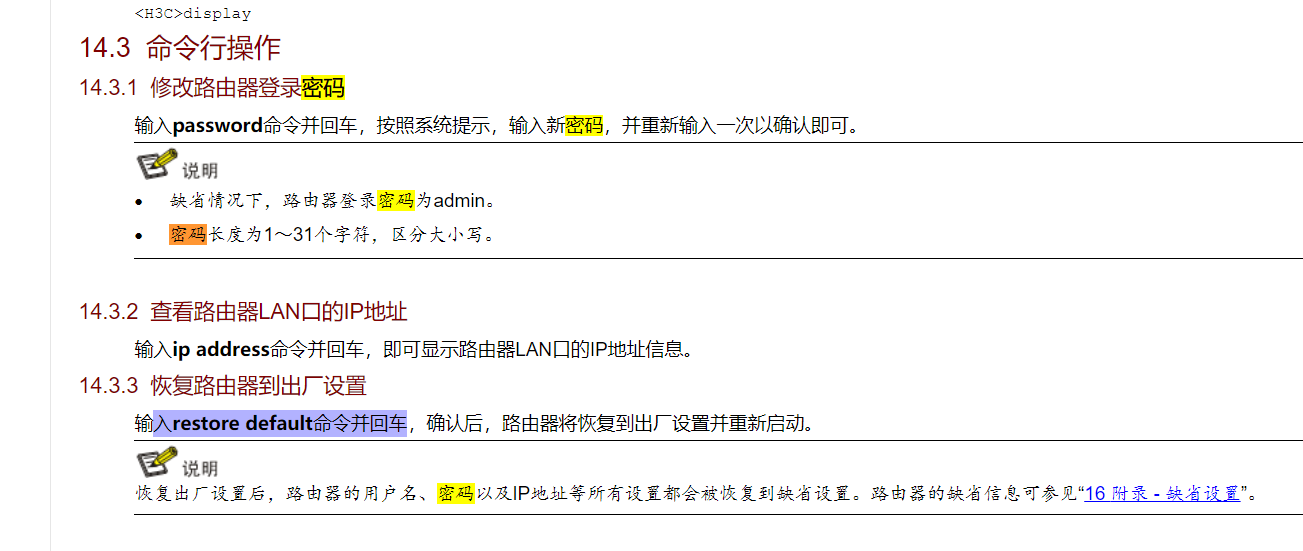 2、如果登录密码忘记了,可以通过命令行恢复,进入到命令行界面方法可参考:https://zhiliao.h3c.com/Theme/details/46988