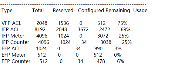 display qos-acl resource回显的每一行代表啥意思VFP ACL这个为什么有75%了
