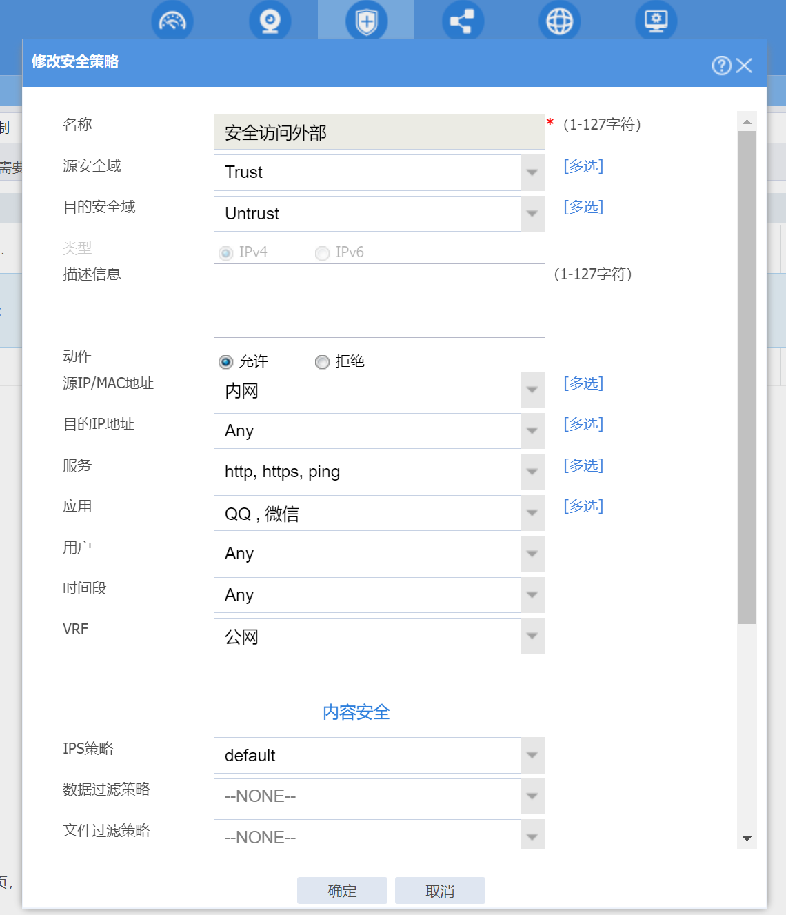 安全策略里面把服务去掉就保留应用呢