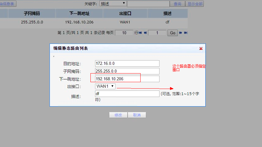 到172.16的网段,走内网192.168.10.206。现在的需求是这个路由条目不要指定接口