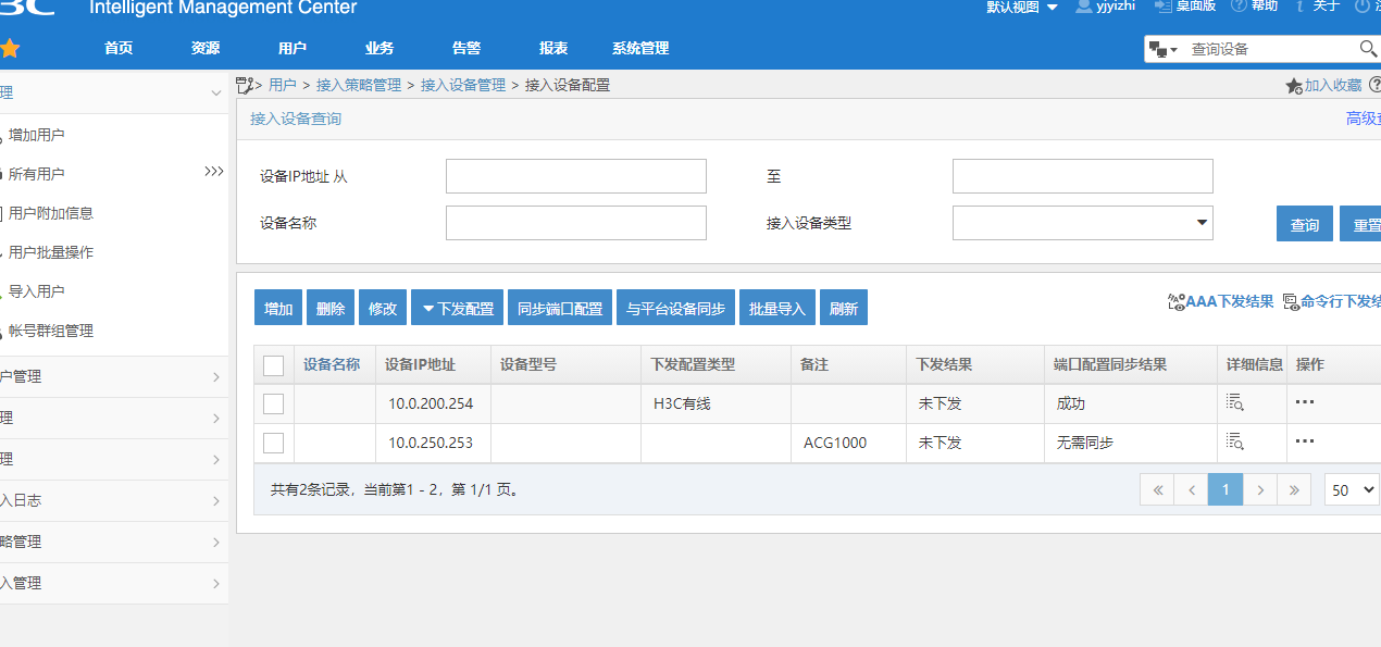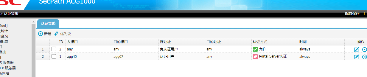 从IMC上的配置来看,目前生效的只有核心交换机上生效了,ACG上的配置未生效,更像是以前的配置没删掉,你可以禁用下ACG上的配置看下
