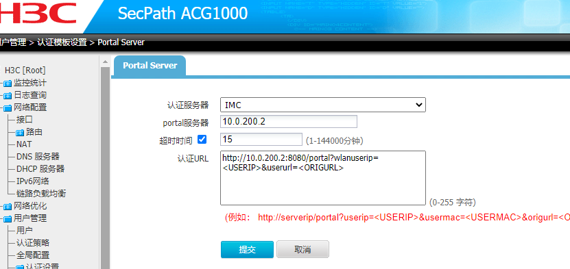 1、第一个是ACG去指向IMC作为portal server和radius server