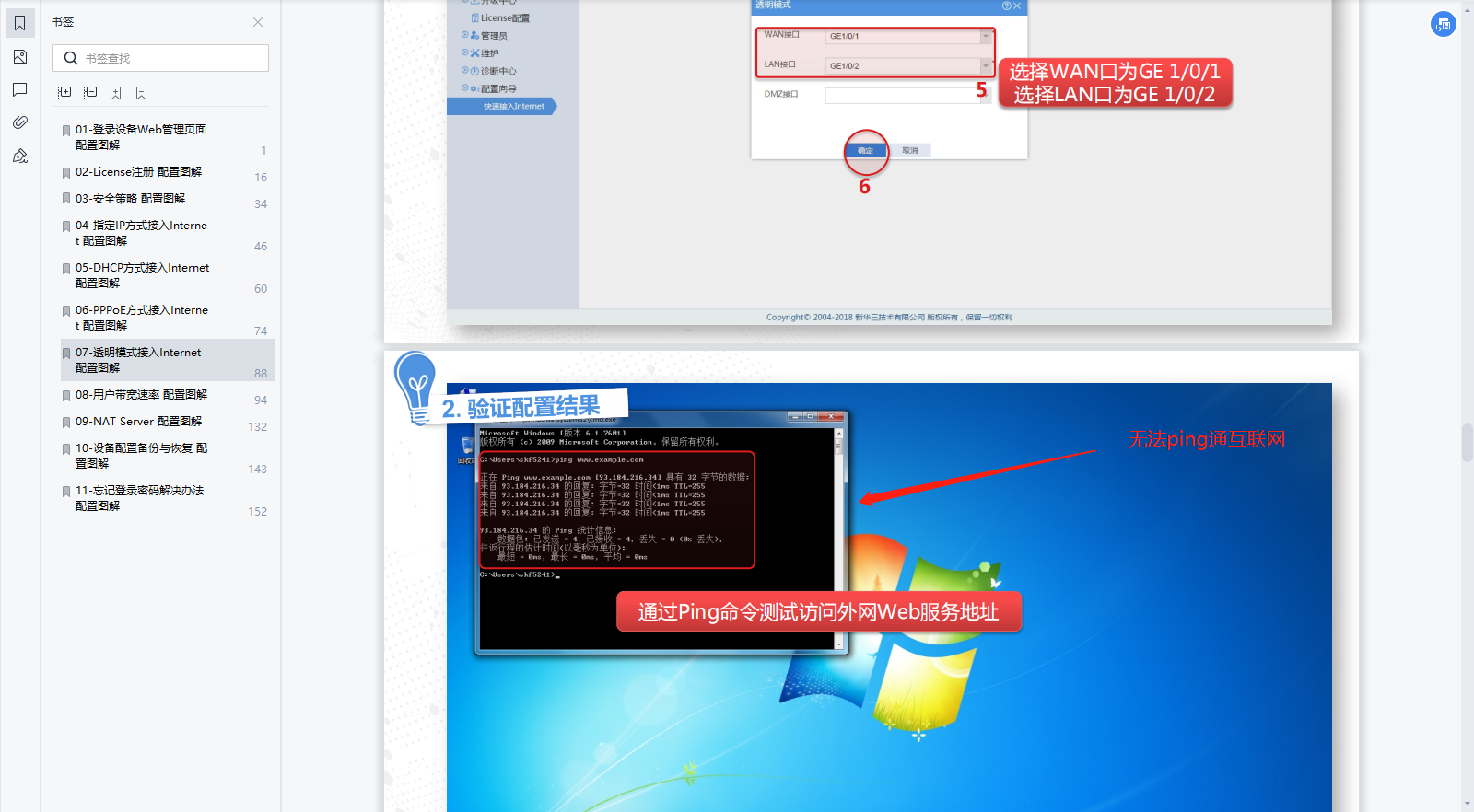 F100-C-A3按照文档一步一步进行配置透明模式访问Internet。结果终端还是无法访问互联网。