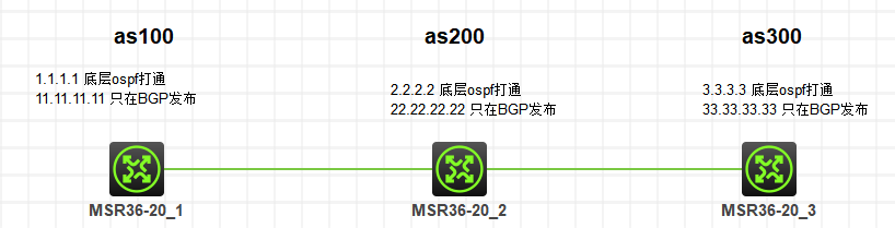 AS100---------AS200---------AS300,AS300发出的路由,由200传递到100,但是100只收来自AS300的路由,200发的不收,300与100是没有邻居关系的,AS200上做路由发布控制,AS100为运营商设备不能操作