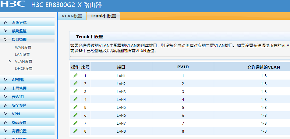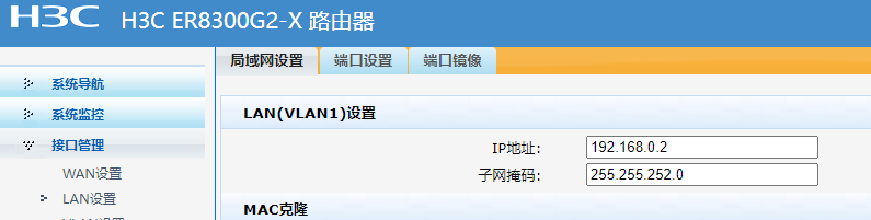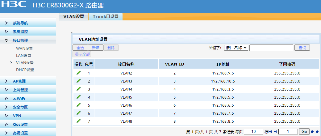 ER8300G2-x 当初在设置的时候,提示地址池不够用,(超过500个),所以设置了VLAN, 如下截图