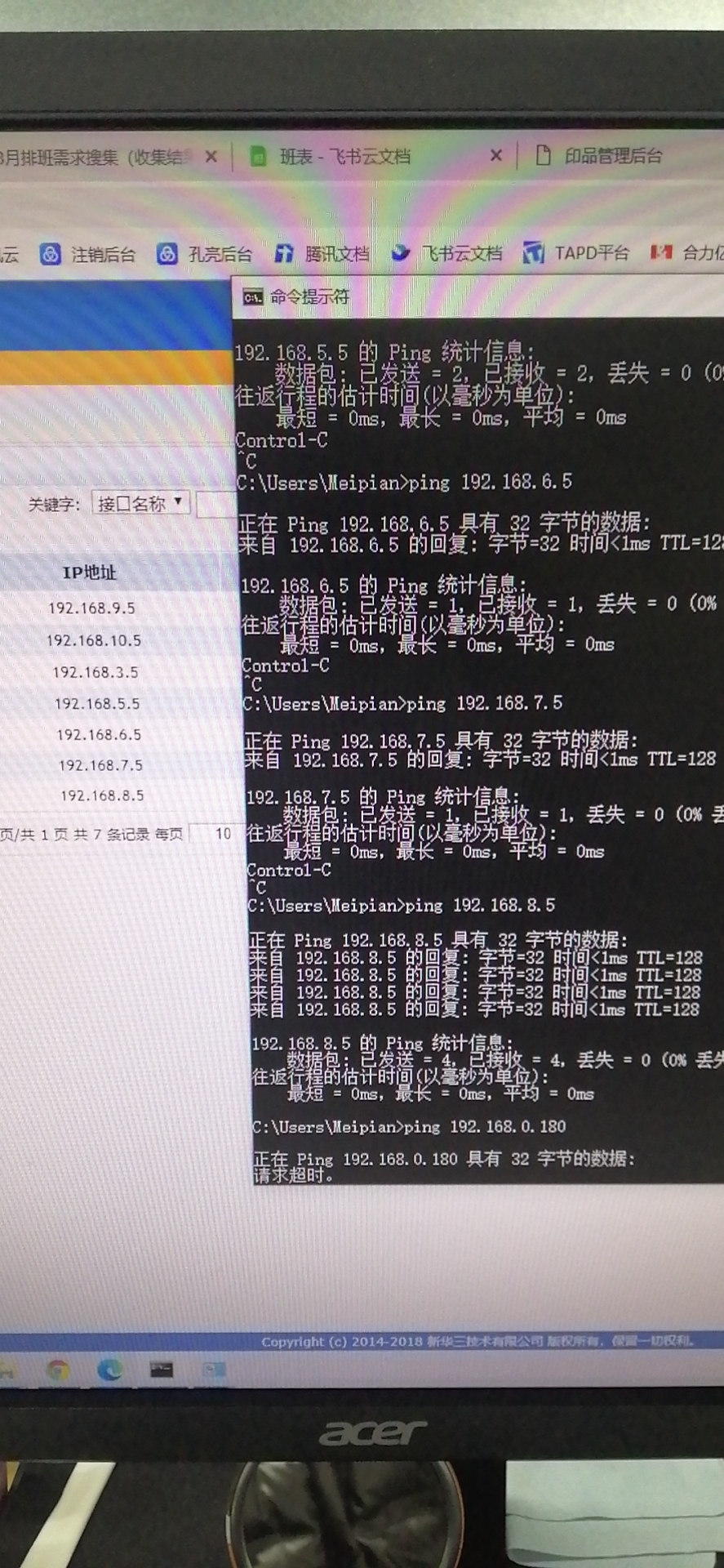 打印机1ip地址:192.168.1.204 打印机2ip地址:192.168.0.180