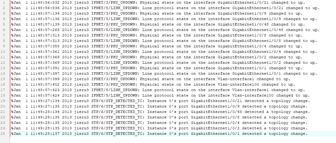 日志是接口down 和收到stp 拓扑变更,重启本日志没关系