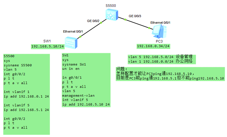 交换机管理vlan这样配置为什么不对?