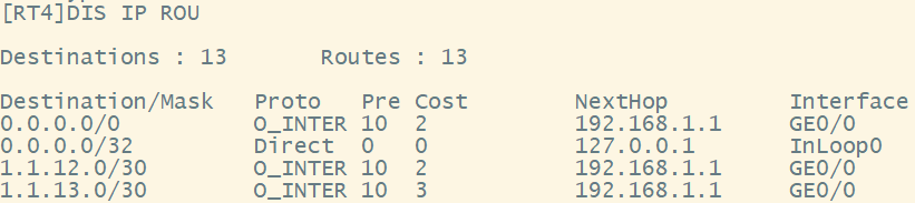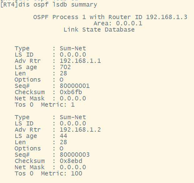 修改其中一台ABR发布type 3路由的COST:stub-router summary-lsa 100,验证如下: