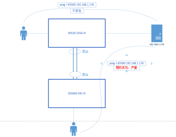 当电脑接在S5560上,持续ping 65500大包丢包严重,随机