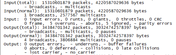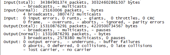 汇聚6506千兆网口链接核心8512,在汇聚6506上看互联端口发现Input(total)报文总数量和Input(normal)报文数量不匹配,确定其差值为异常报文,在核心8512上看互联端口Input(total)和Input(normal)报文数量相同,双方进行ping测无丢包现象