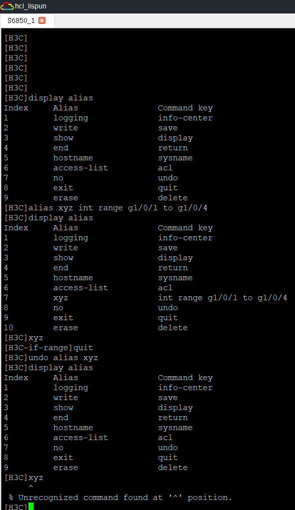根据你的答案,推出了删除我问题中提到的别名的命令为:undo interface range name "别名1" 就采纳你的吧,谢谢你