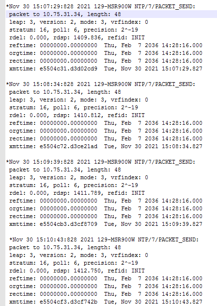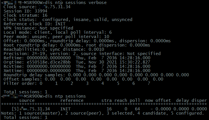有其他同型号,通版本设备,不同ipsec专线接入NTP服务器同步正常。所以感觉服务器应该没有异常才是。