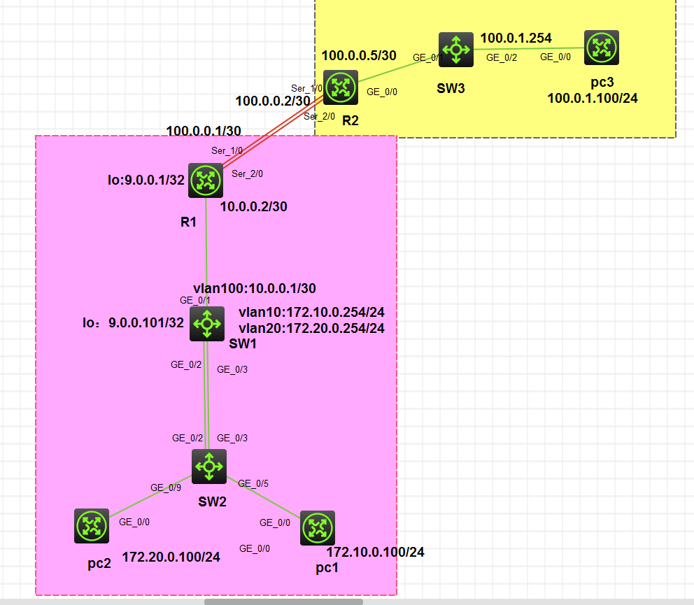 如果都在一个地址池,肯定是不行的,控制不了,最好的方法就是配置nat的时候,把PC1和PC2区分开,nat后边跟acl控制,把PC2单独nat一个地址出去,然后在R2上做策略