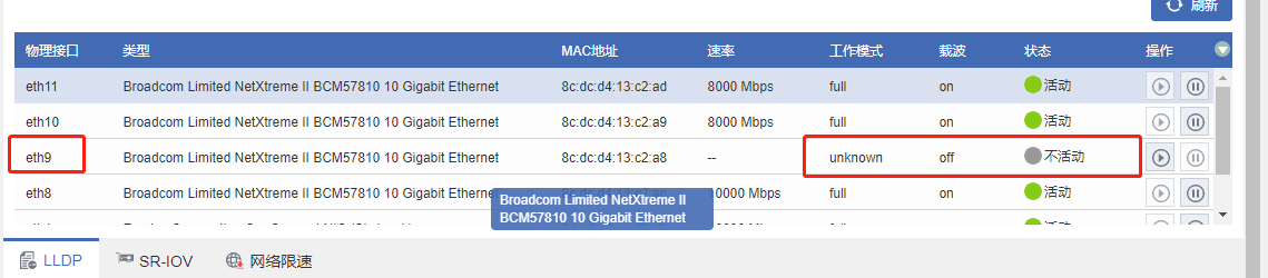 在服务器管理界面确认下网卡是否故障,检查网卡及链路情况