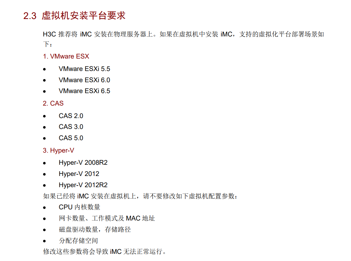 imc安装需要虚拟机硬件信息参考,具体参考IMC安装指导书。
