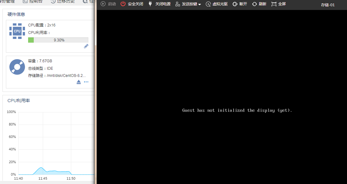 CAS 安装虚拟机超过一定数量就出现Guest has not initialized the display (yet)无法进入系统
