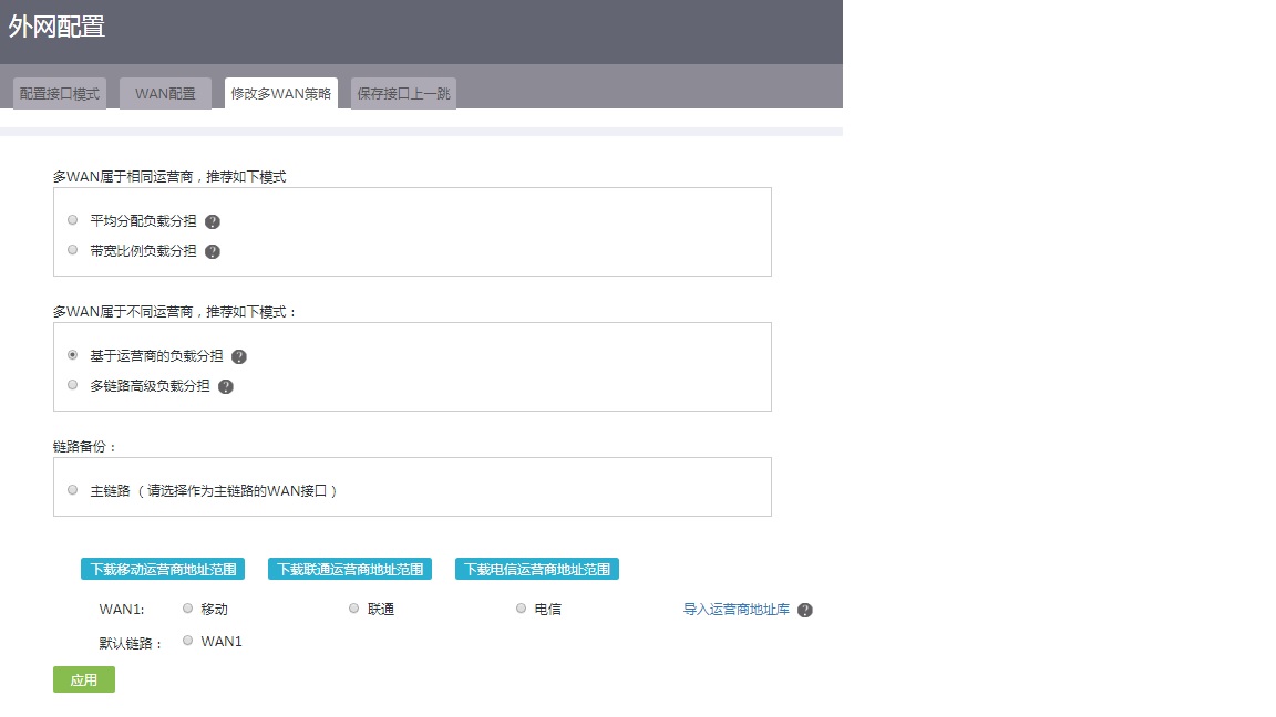 这个相同运营商宽带负载 里面能不能设置1:0:0:0 就是 只有1口参与流量分配