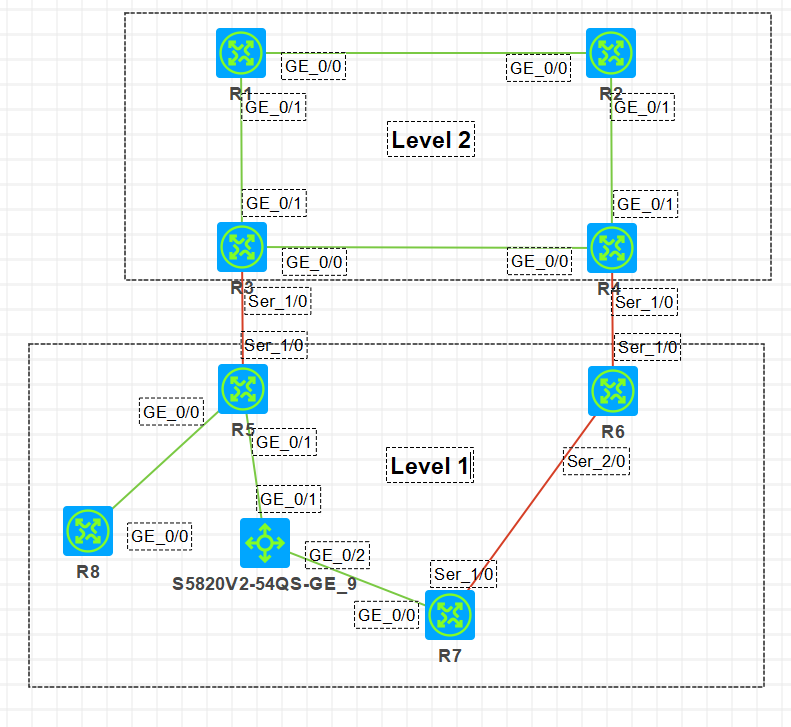 问题:R7会从R5和R6收到两条默认路由,如果在不更改Cost值的情况下,如何实现优选R5传递的默认路由