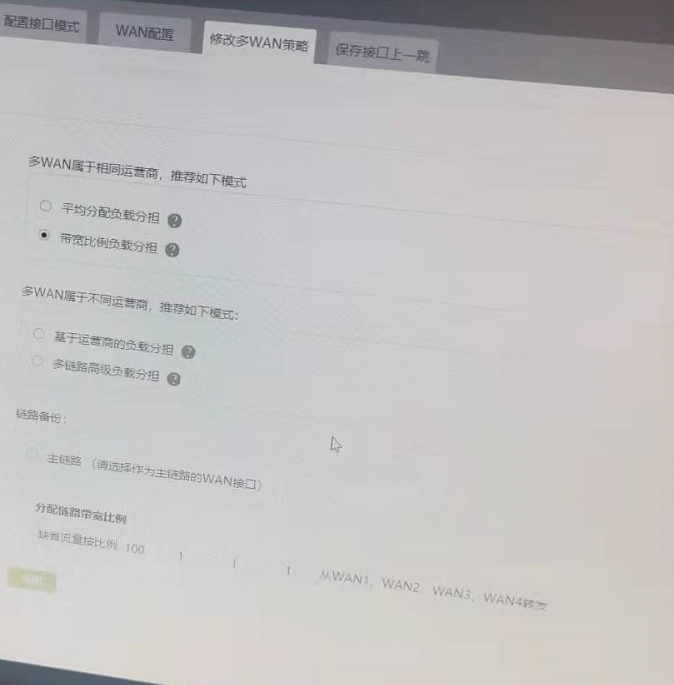 这个地址只能设置:100:1:1:1 不能设置像GR3200那样的 1:0:0:0 只有后面的3个WAN设置有比列。因为后面3个WAN口是专网,所有会造成个别时候上不成网。咋设置正常上外网只走WAN1 外网口