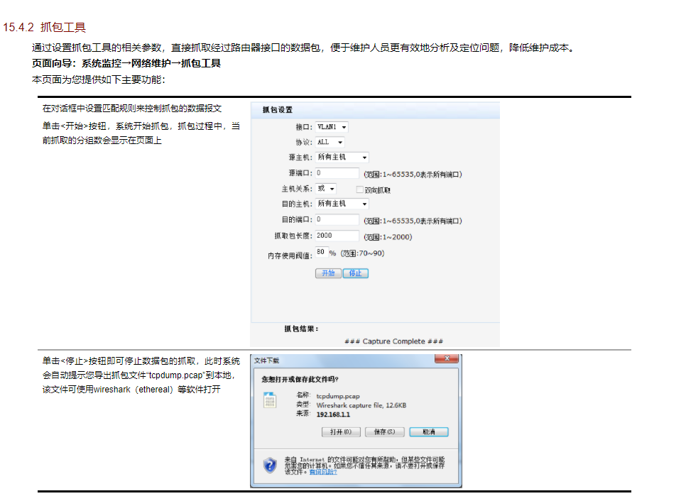 web界面可以抓包,系统监控--网络维护--抓包工具