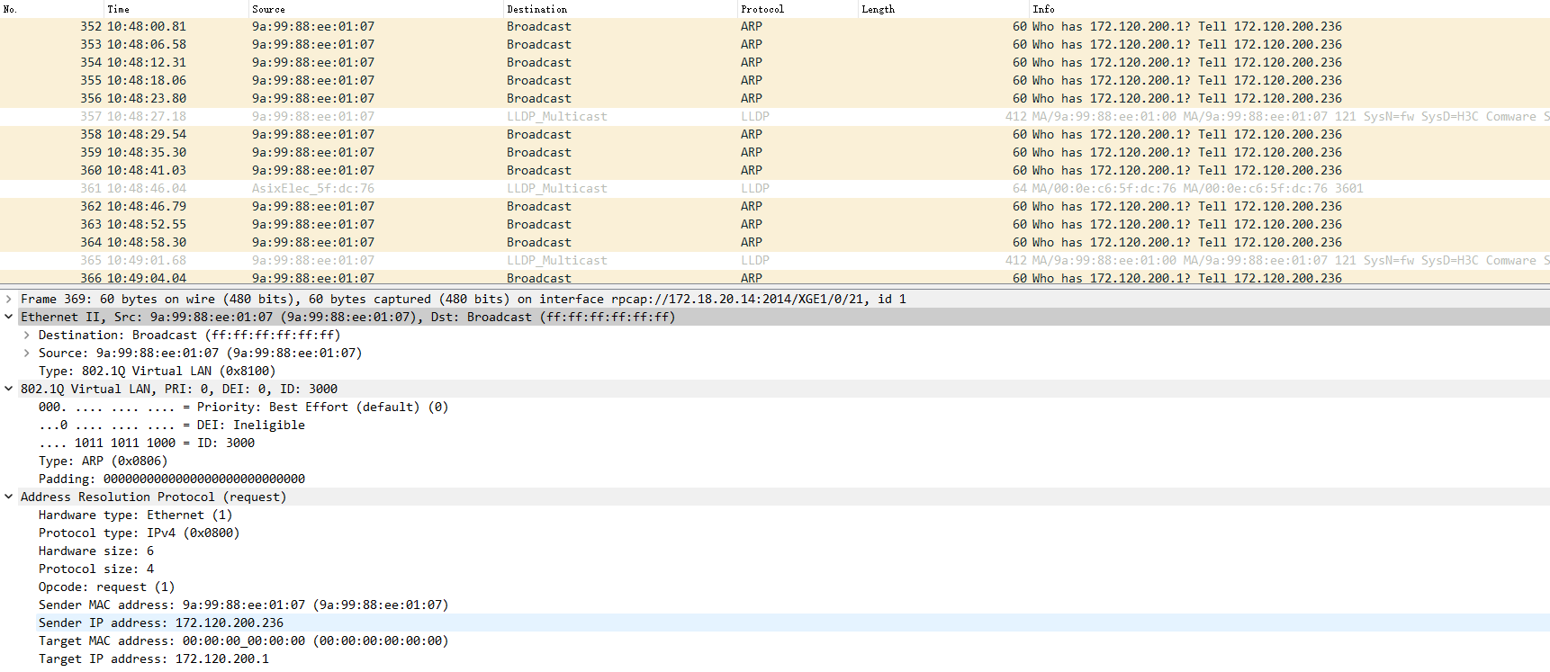 172.120.200.236 ping 分布式网关IP 172.120.200.1 时, 172.120.200.1不响应arp请求