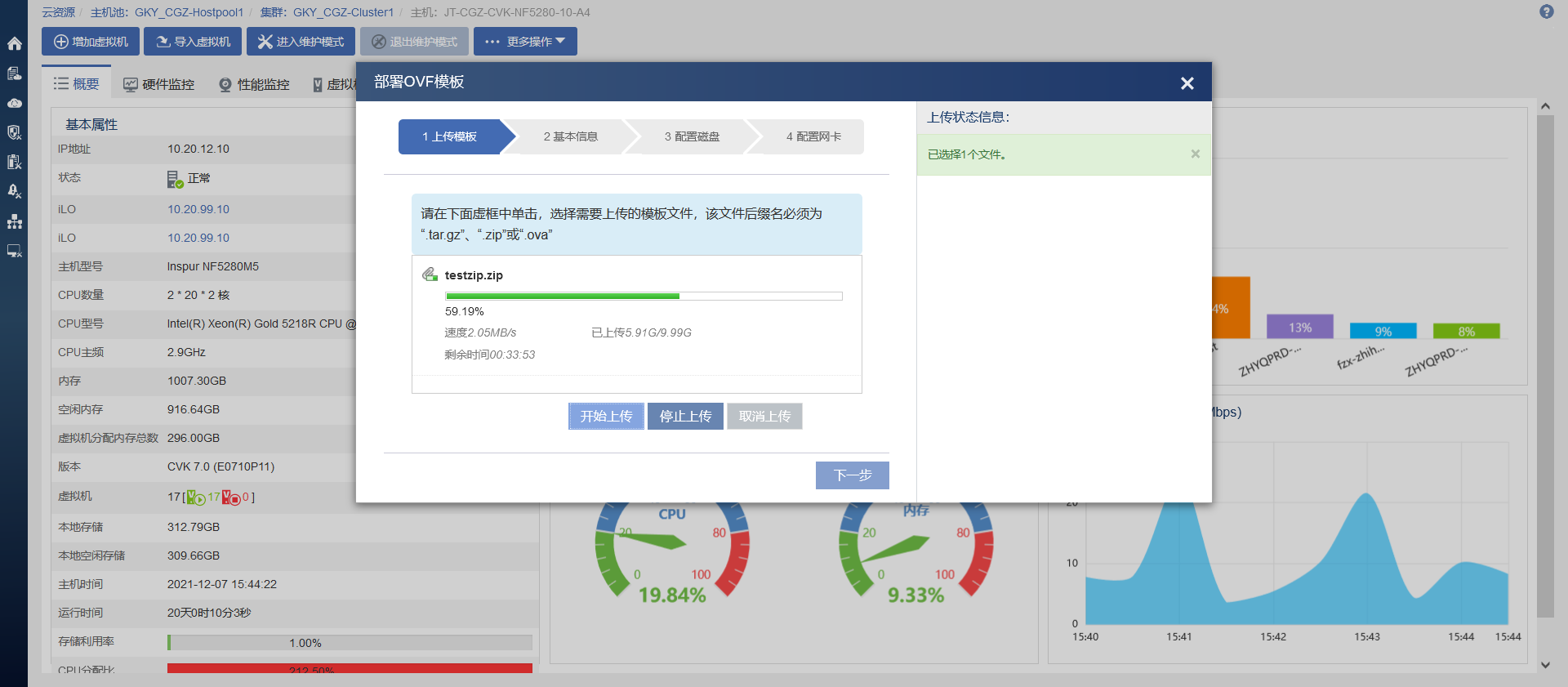 我在使用OVF模板导入VMware虚拟机时,因为VMware导出为OVF格式,就首先对其进行了压缩,压缩成ZIP格式。但是在上传过程中发现总是传一段时间CAS就退出部署OVF的页面了,重新传输可以续传,请问这是什么原因?