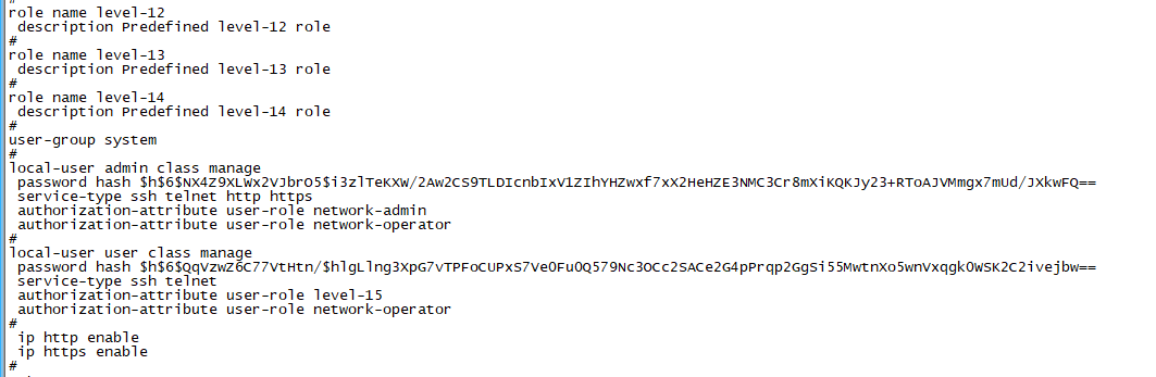 设置ssh、http、https、telnet用户名、密码登录,具体配置如下