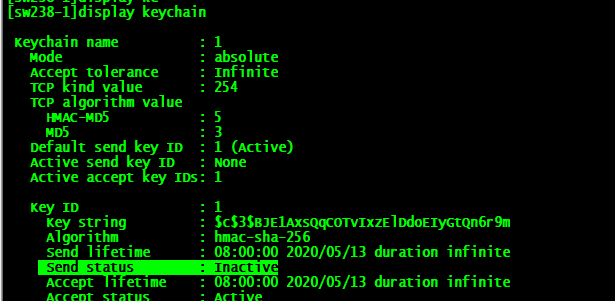 用来校验接收报文时,key是否有效: · Active:key有效 · Inactive:key无效 |