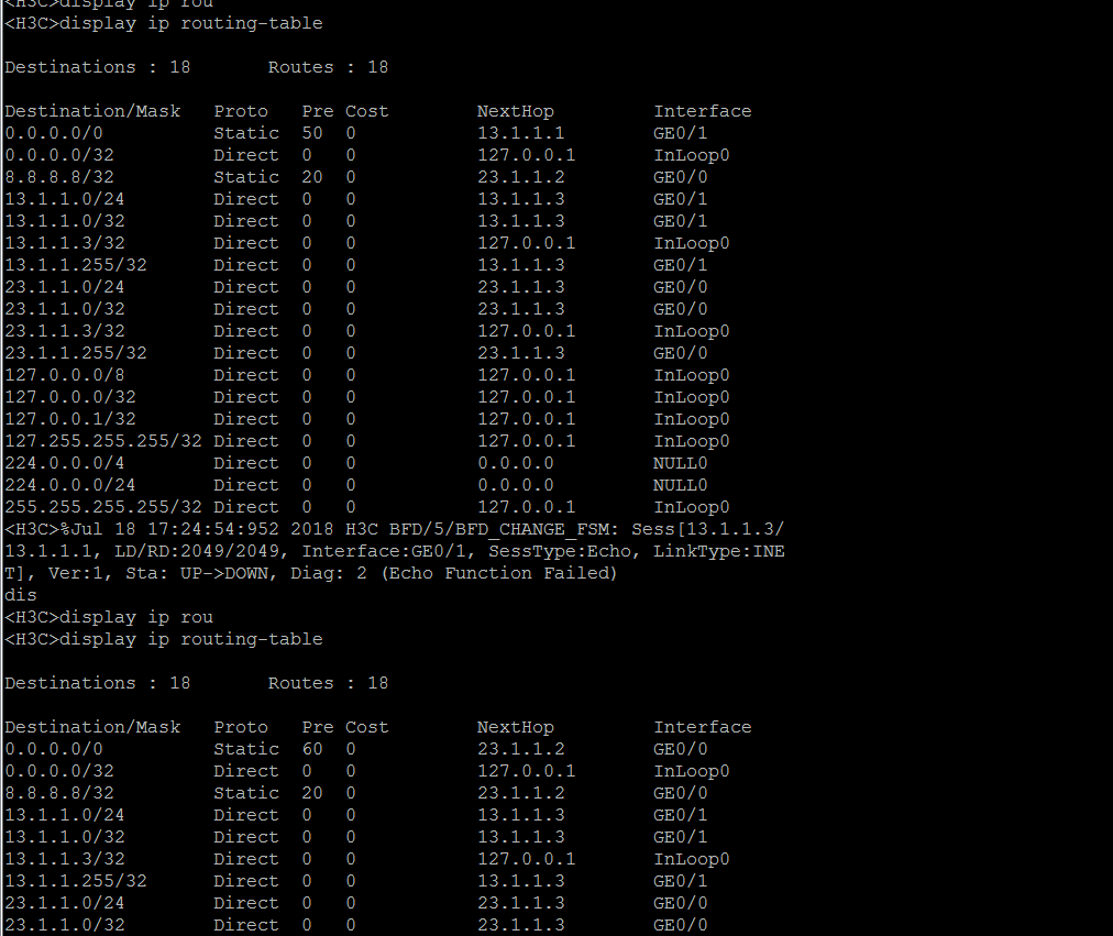track是关联bfd的呀,原理是track根据bfd的状态,来关联静态路由的状态,track可以理解是把bfd和静态路由关联的中间件