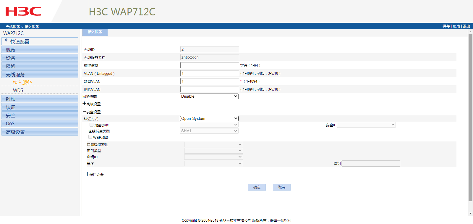 步骤1:在导航栏中选择“无线服务 > 接入服务”,进入如下图所示页面。