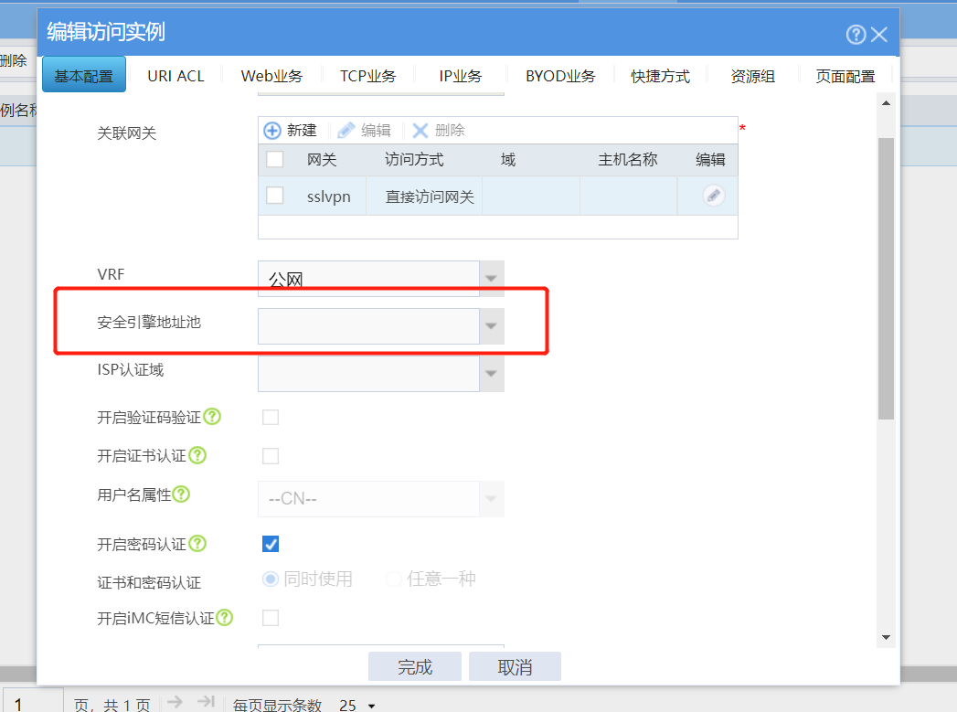 您好,如果设备的引擎板个数大于1时,需要创建安全引擎地址池,并在SSL VPN访问实例中引用该地址池。安全引擎地址池中的地址需要与SSL VPN网关上连接内网服务器的接口IP地址在同一网段,且地址池中的地址数目需要大于引擎板的数目。