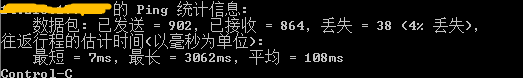 2,用网关ping出口设备(路由器、防火墙等),同样若丢包,则问题在这段,否则下一步。