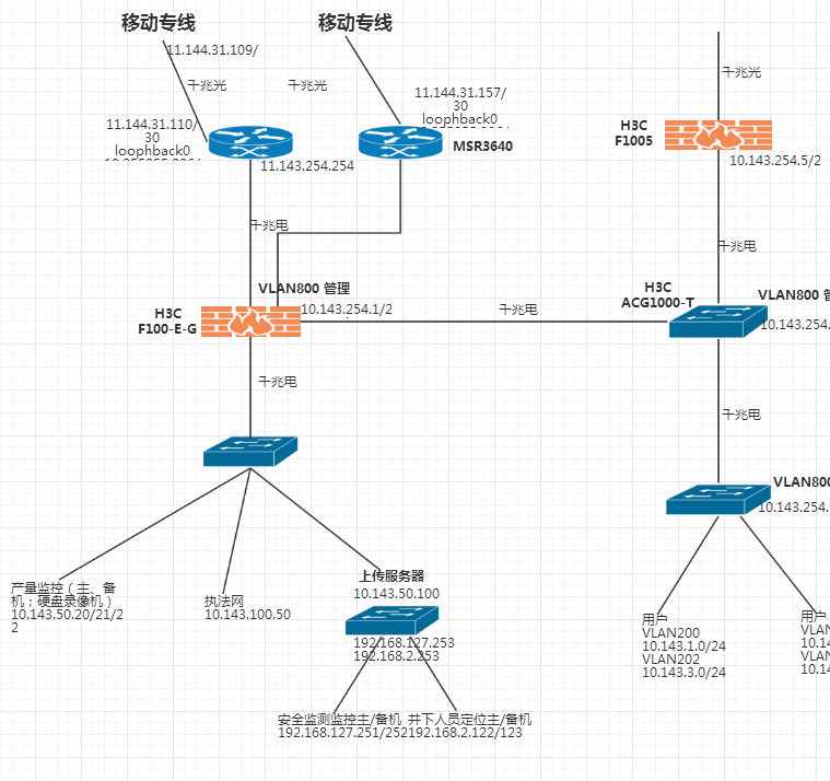 建议在防火墙F100-E-G配置静态路由、Track与NQA联动,防火墙配置两台默认路由,主路由下一跳为msg36401,备路由为msg36402,配置nqa和Track 检测公网是否可达,当nqa检测公网不可达时,从主路由器msr36401切换到msg36402。 案例连接:http://www.h3c.com/cn/d_201601/911775_30005_0.htm#_Toc440360228