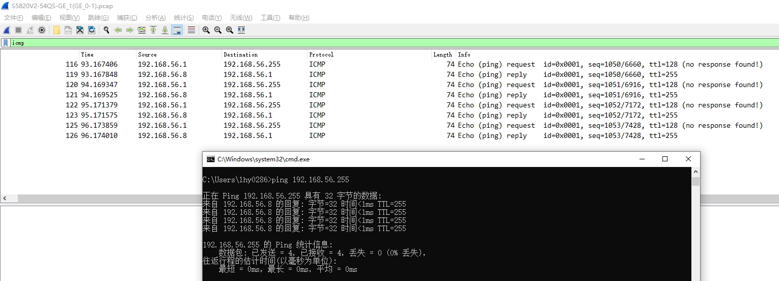 客户今天安全测评扫描出了各个网段的广播地址,在客户端上抓包发现该地址是由交换机回包的,客户认为很不安全,为什么会回包?下图是模拟做的测试和抓包,交换机vlanif地址是192.168.56.8/24,客户机地址是192.168.56.1在ping 192.168.56.255的时候是交换机在回包。
