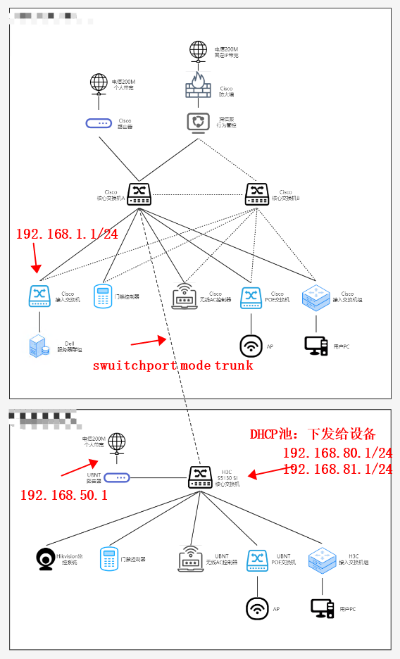 4.如有外网流量在H3C核心交换机中直接走出去不再向上寻找一圈,如有内网1网段流量才向上走。