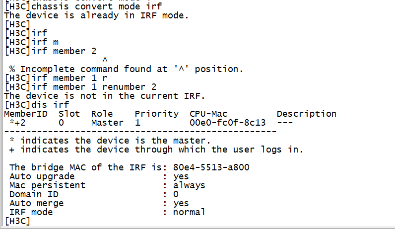 我现在是先切换成irf模式,再去堆叠的,现在就是成员编号修改不了
