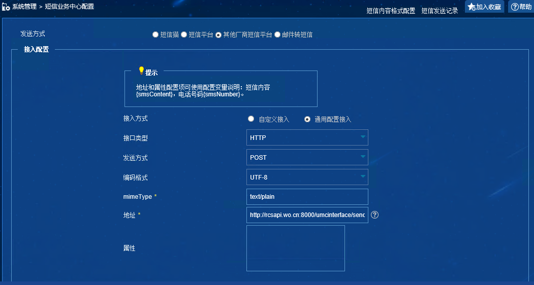 定制开发三方短信平台(融合云信),将相文件导入服务器指定目录并完成配置后,IMC侧需要如何配置?选择自定义接入还是通用配置接入?如果是通用配置接入参数大概怎么填?
