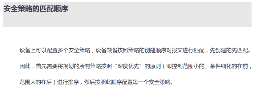 华三安全策略中匹配顺序是根据最上面的策略最先匹配,和策略后面的ID号大小没关系吧