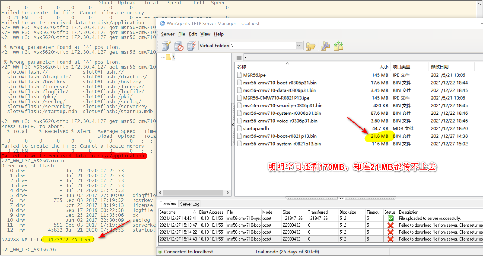 flash下还有214MB空间,ipe文件是145MB,却提示空间不足。