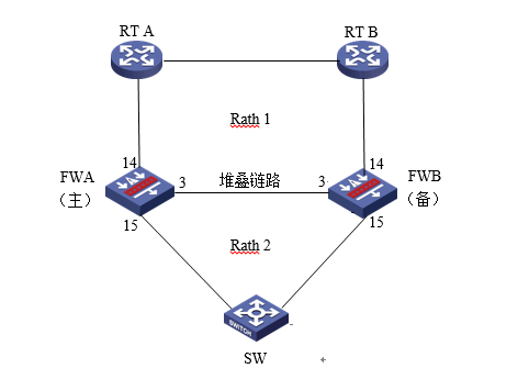 2、 正常情况下业务流量全部负载在FWAFWA出现故障后流量全部切到FWB运行