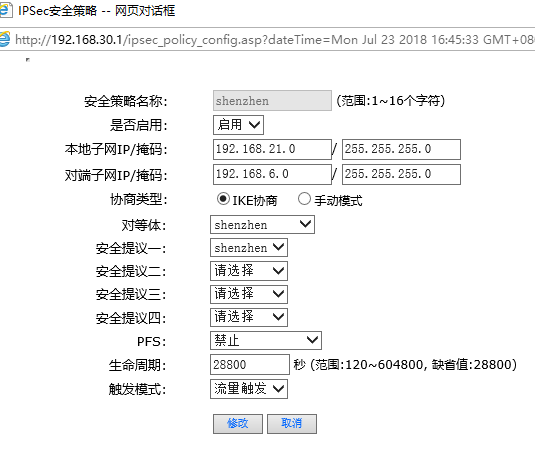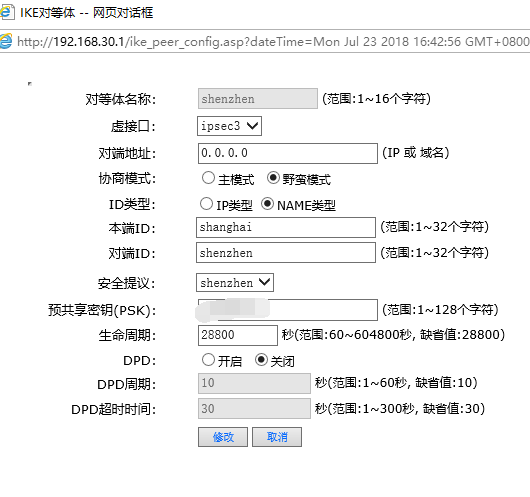 总部ER3260 固定IP,分支是AR120 pppoe拨号上网。总部与分支之间无法建IPSEC VPN。不知道我配置对不对。跪求大神帮忙。